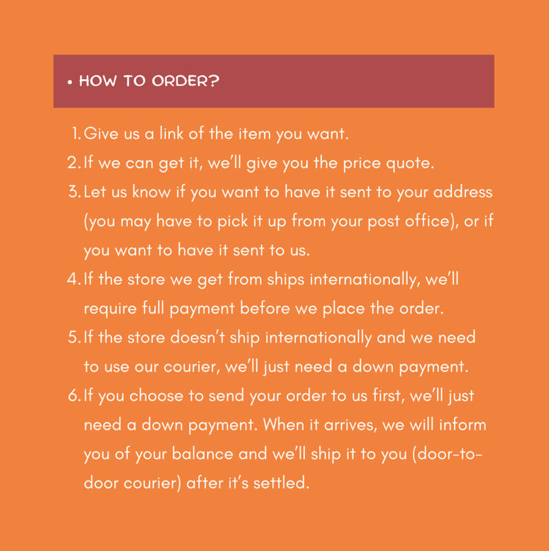If there’s something you want but can’t get, let us help!We can order from anywhere in the world! Japan, US, Europe, you name it.